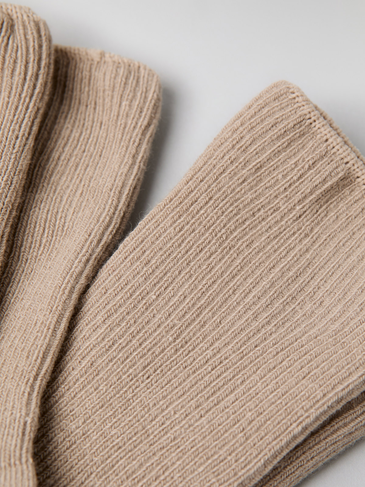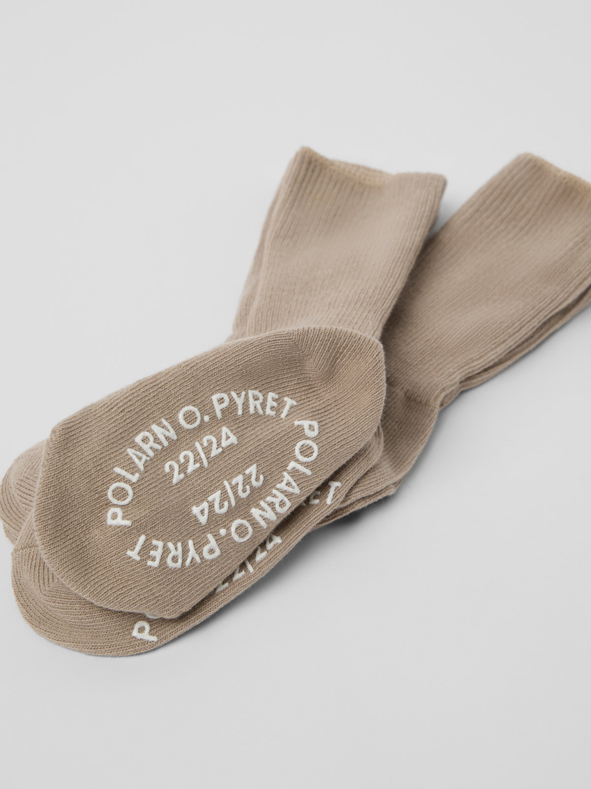 Fyll på strumplådan med två par enfärgade strumpor, i mjuk ekologisk bomull för baby. Strumporna har mjuk, vikbar mudd som inte skaver.