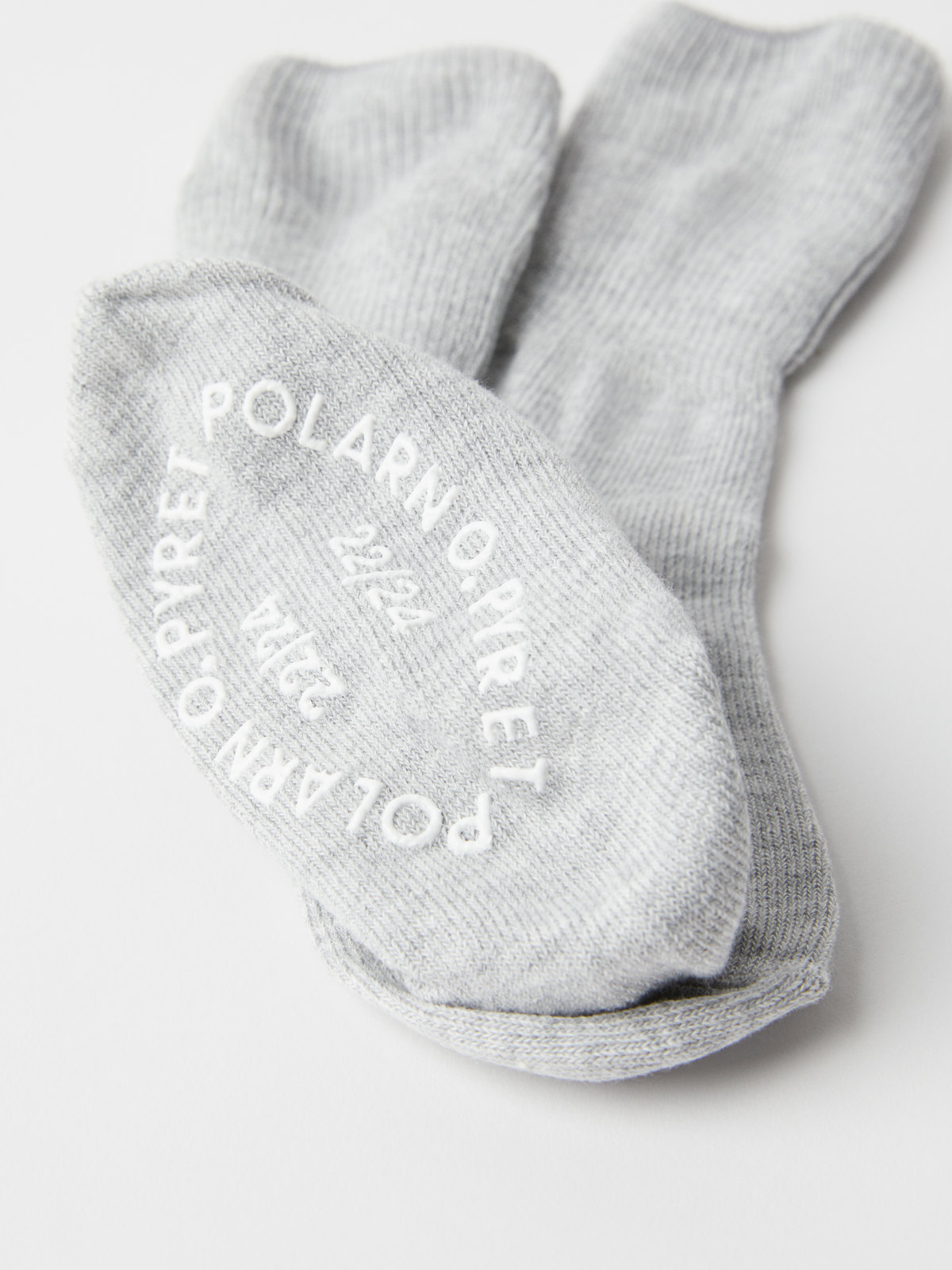 Tvåpack strumpor med halkskydd för baby. Strumporna är tillverkade i mjuk ekologisk bomull och har en mudd som kan vikas upp eller ned. Den här produkten ingår i vårt 3 för 2-erbjudande, som ej kan kombineras med andra erbjudanden.