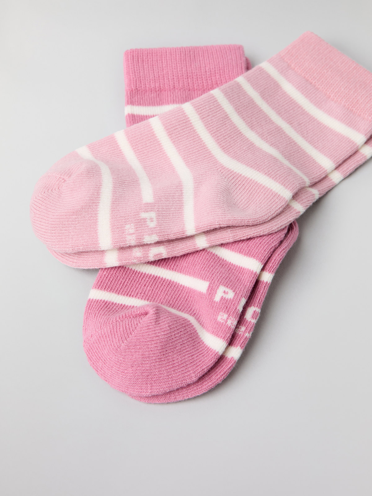 Klassiskt randiga strumpor i mjuk ekologisk bomull i 2-pack. Storleken är markerad på insidan av skaftet, där finns även plats att skriva barnets namn – lätt att hålla ordning!