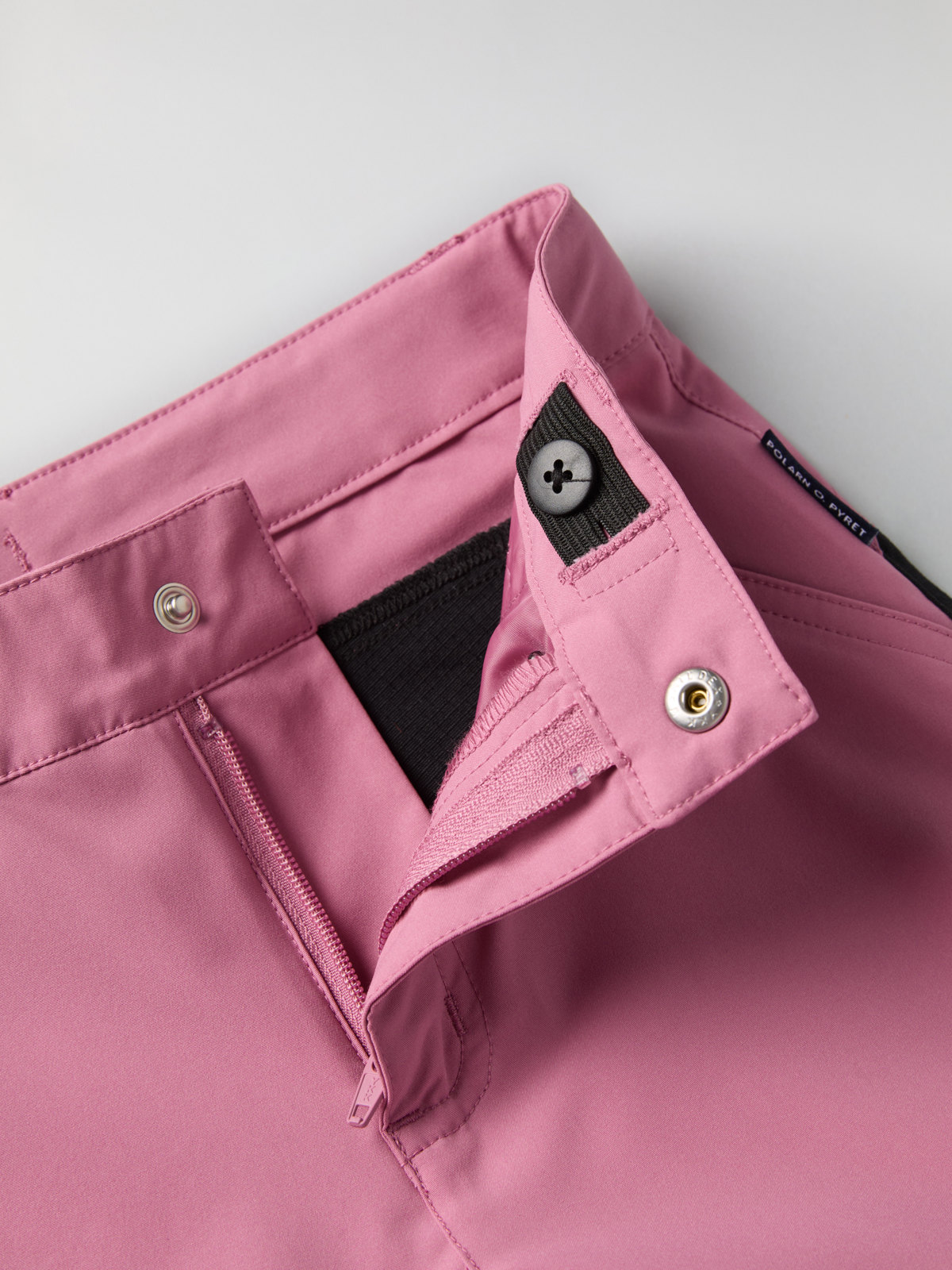 Midjan har hällor för skärp och kan regleras på insidan med knapphålsresår.