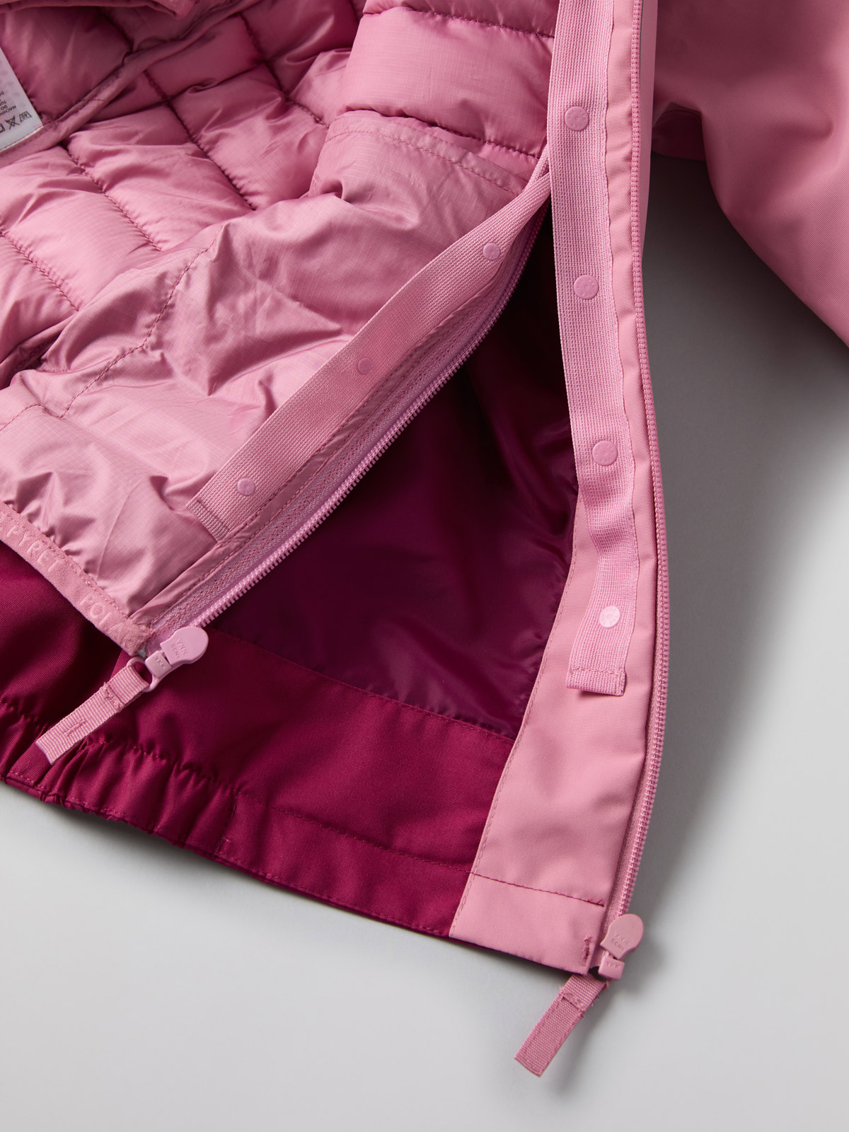 Plaggets unika knapplösning gör den enkel att fästa ihop med våra skaljackor STORMY och HAZY.