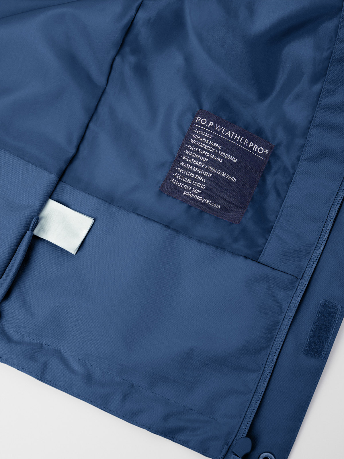 Ytterkläder märkta PO.P WeatherPro® uppfyller alla våra krav för funktionsytterplagg, oavsett om det gäller slitstyrka, vattentäthet, andningsförmåga eller barnsäkerhet.