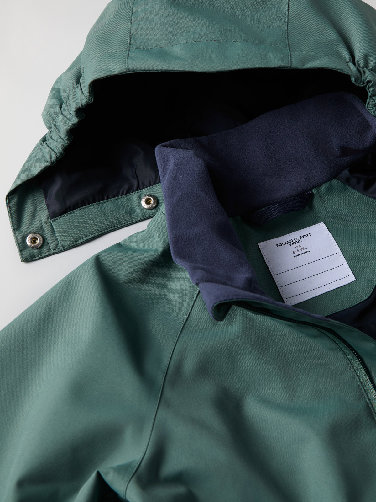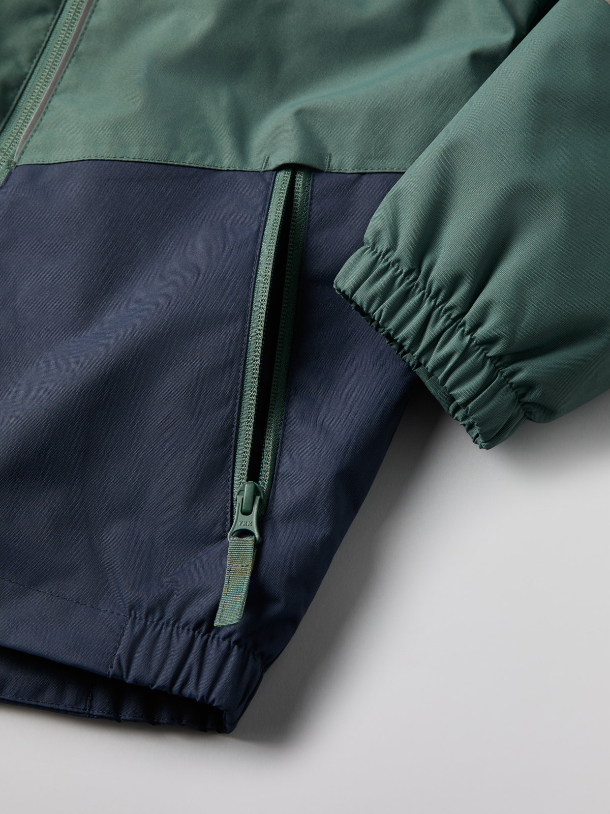 Plagget är tillverkat i vattentätt material med minst 10 000 vattenpelare – det betyder att ditt barn kan vara ute i spöregn utan problem.