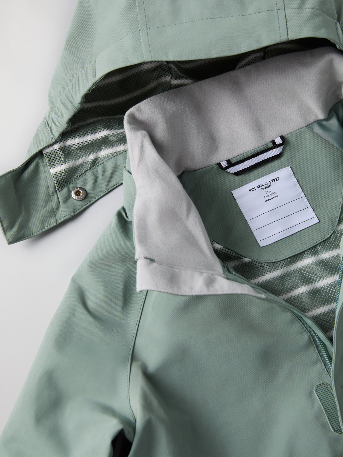 • Vindslån på utsidan och insidan av dragkedjan ger extra skydd mot kall luft och väta. Dragkedjan har ett skydd högst upp för att inte skava mot haka och kind