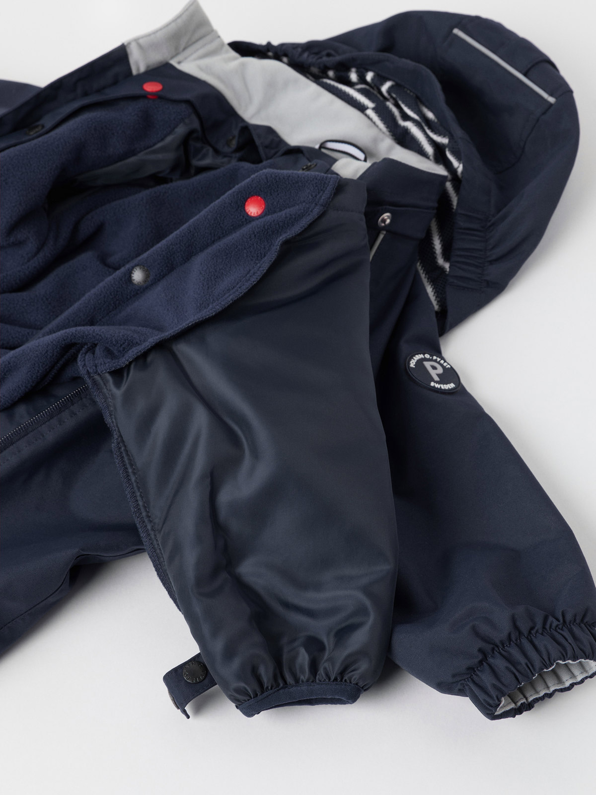 • Den kontrastfärgade startknappen som finns på insidan, gör att du enkelt kan knäppa ihop fleecefodret med overallen