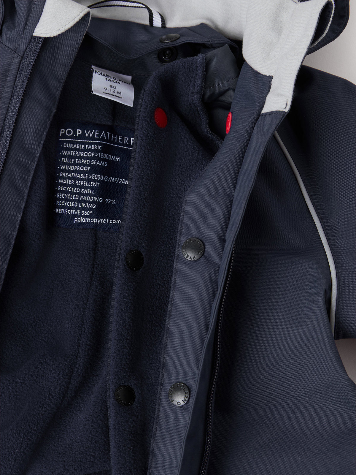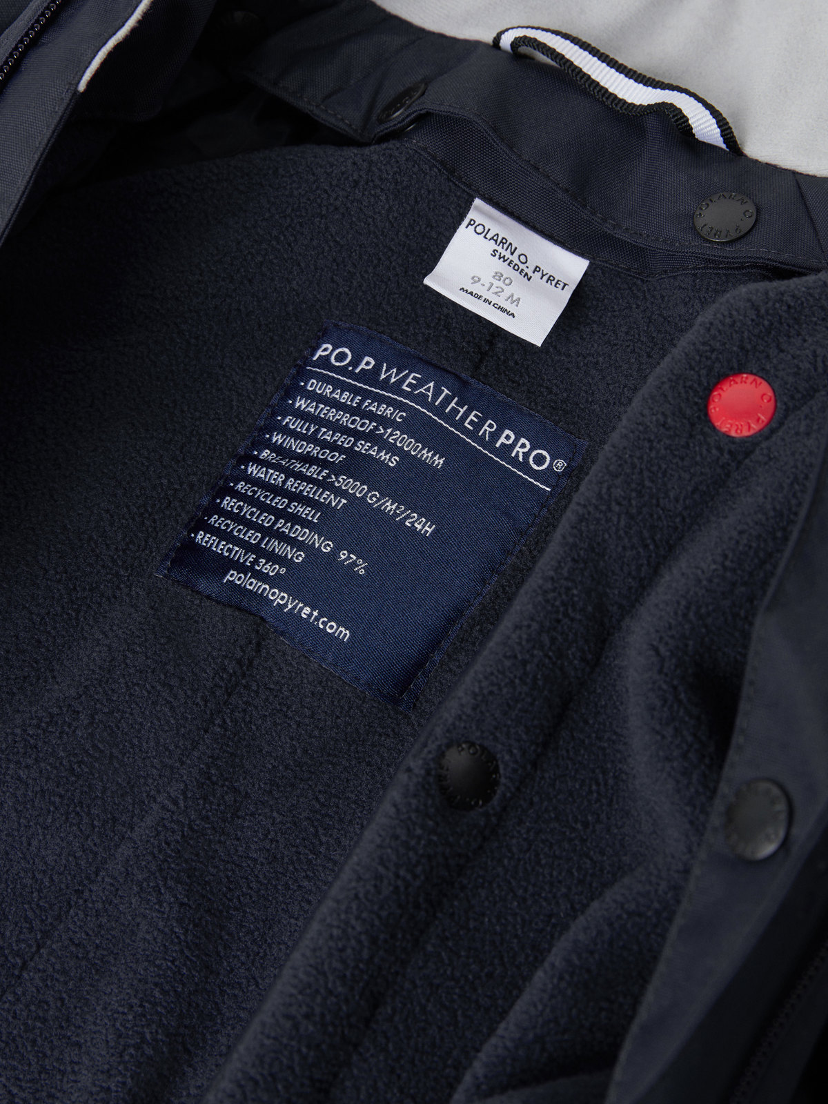 Ytterkläder märkta PO.P WeatherPro® uppfyller alla våra krav för funktionsytterplagg, oavsett om det gäller slitstyrka, vattentäthet, andningsförmåga eller barnsäkerhet.