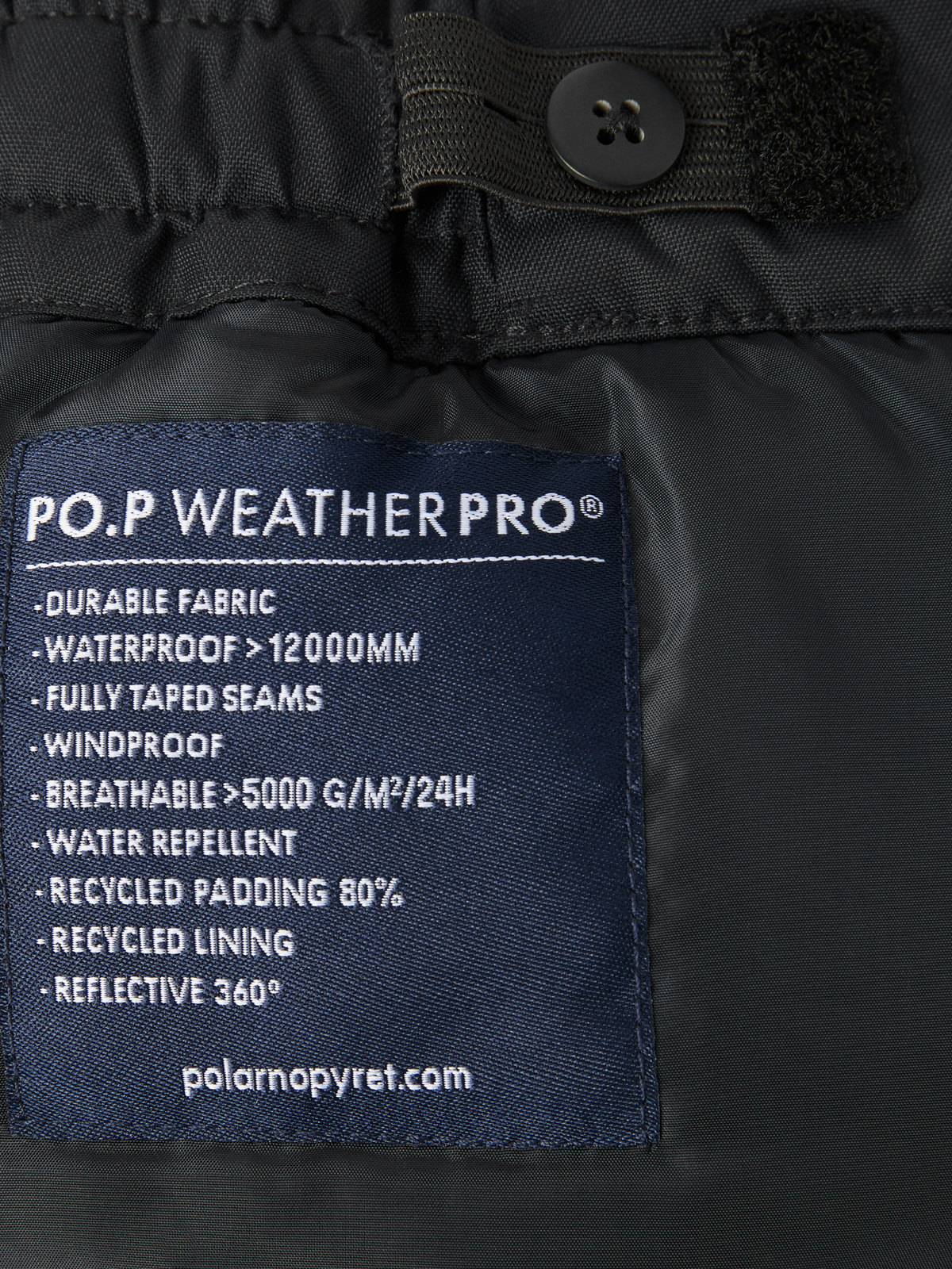 Ytterkläder märkta PO.P WeatherPro® uppfyller alla våra krav för funktionsytterplagg, oavsett om det gäller slitstyrka, vattentäthet, andningsförmåga eller barnsäkerhet.