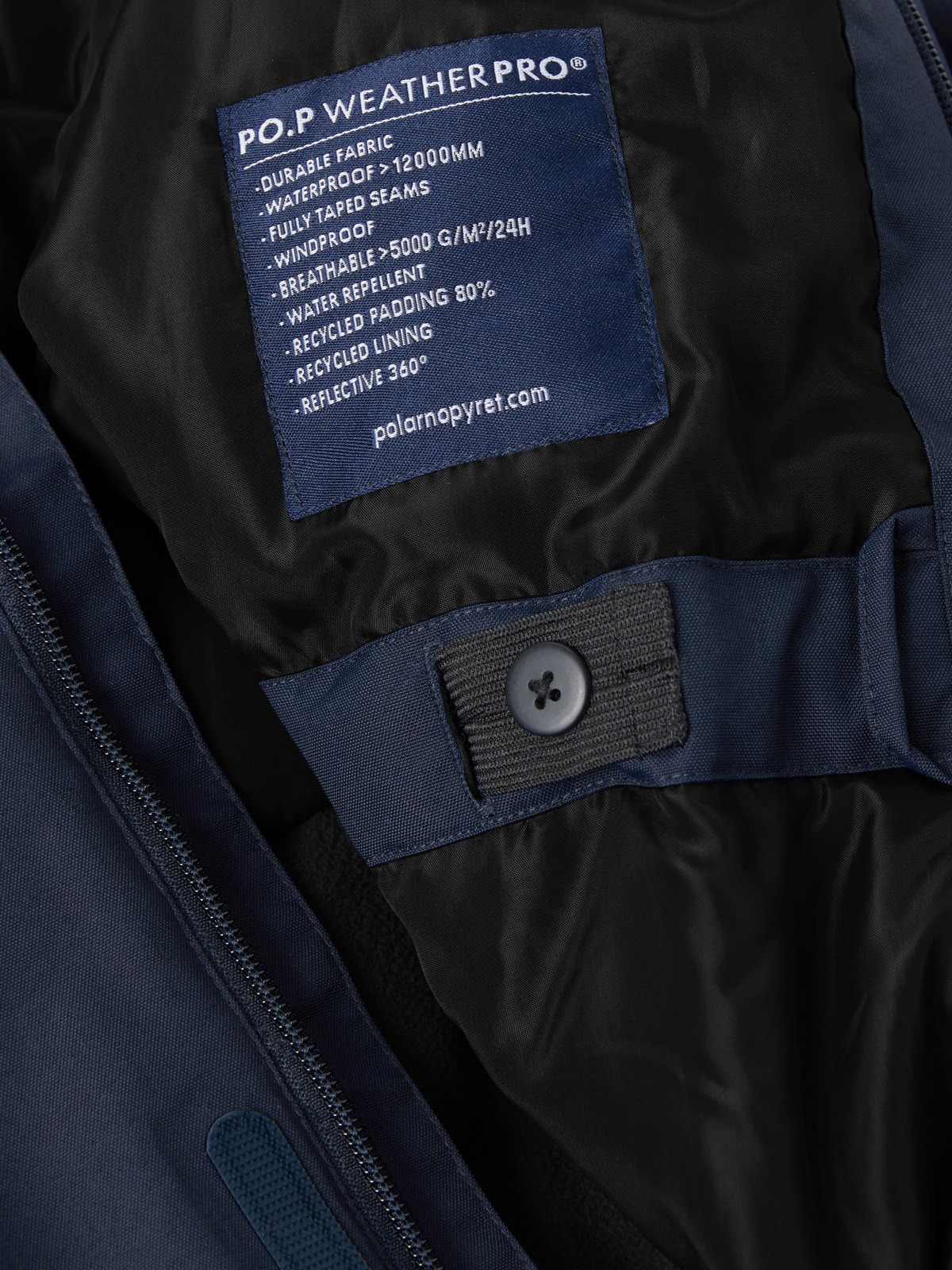 Ytterkläder märkta PO.P WeatherPro® uppfyller alla våra krav för funktionsytterplagg, oavsett om det gäller slitstyrka, vattentäthet, andningsförmåga eller barnsäkerhet.