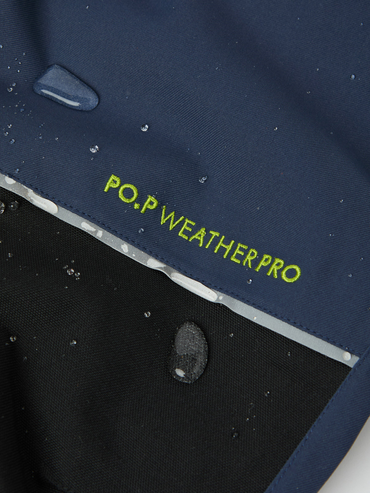 Ytterkläder märkta PO.P WeatherPro® uppfyller alla våra krav för funktionsytterplagg, oavsett om det gäller slitstyrka, vattentäthet, andningsförmåga eller barnsäkerhet.